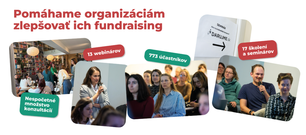 V DARUJME.sk organizácie v tomto procese intenzívne podporujeme. Počas roka organizujeme školenia, webináre a individuálne konzultácie, kde zdieľame skúsenosti z praxe a pomáhame organizáciám nastavovať ich fundraising systematicky.